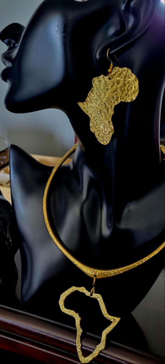 Add a touch of luxury to your wardrobe with this elegant set of a necklace and earrings with the African map design. Durable and stylish for all occasions